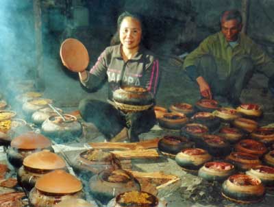 Mỗi vụ gia đình nghệ nhân Trần Huy Thoả cung ứng ra thị trường 1.600 niêu cá. Ảnh: Văn Chiến |