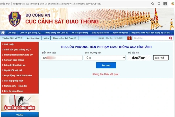 Sau khi hoàn tất các bước trên, chủ xe ấn tra cứu và sẽ ra thông tin vi phạm của phương tiện. Tuy nhiên, chiếc ô tô BKS: 30A-123.45 không có vi phạm nên hệ thống sẽ hiện ra là "không tìm thấy kết quả".