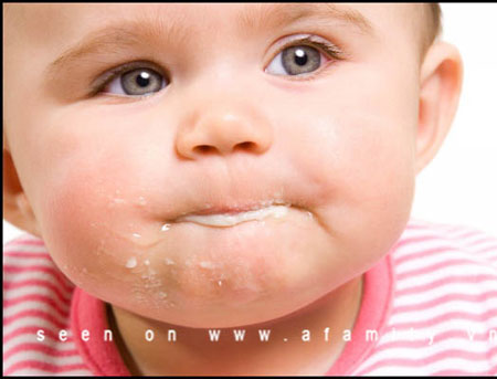 Đổ được thìa sữa vào mồm thì Dứa lại há miệng chứ không ngậm lại, thậm chí khóc cũng không chịu nuốt, cứ ọc ọc trong miệng. Mẹ Dứa phát ốm vì thói ăn ngậm của con.