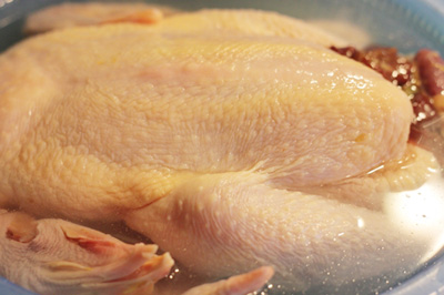 - Gà làm sạch và rửa với nước muối pha loãng, ngâm vào chậu nước muối khoảng 5 phút, sau đó lấy ra để ráo.