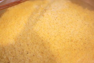 - Gạo nếp vo sạch, ngâm vào chậu nước lọc, ngâm qua đêm, nếu muốn có màu đẹp, bạn có thể hòa vào một ít bột nghệ.