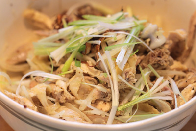 - Đầu hành lá đập dập, thái sợi. Phần hành xanh cắt khúc.