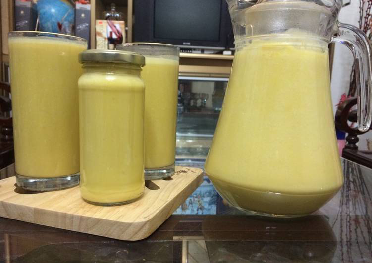 Đợi sữa bí đỏ nguội hẳn thì có thể cho vào bình, chai lọ, bảo quản trong ngăn mát tủ lạnh, rồi uống dần. Sữa bí đỏ mịn mượt và có màu vàng rất đẹp. Mùi vị thơm béo không quá ngọt.