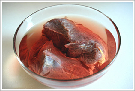 Sau 30 phút, vớt thịt bò ra đĩa, để thịt nguội và tự khô bớt nước. |