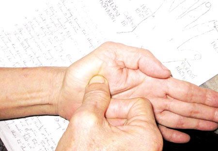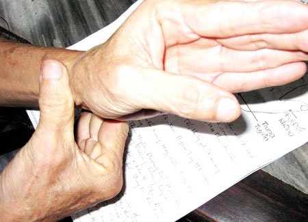 GiadinhNet - Do tuổi tác, TS. Lược không thể trực tiếp chữa trị cho người bệnh nên đã hiến phương pháp tự bấm huyệt tay.