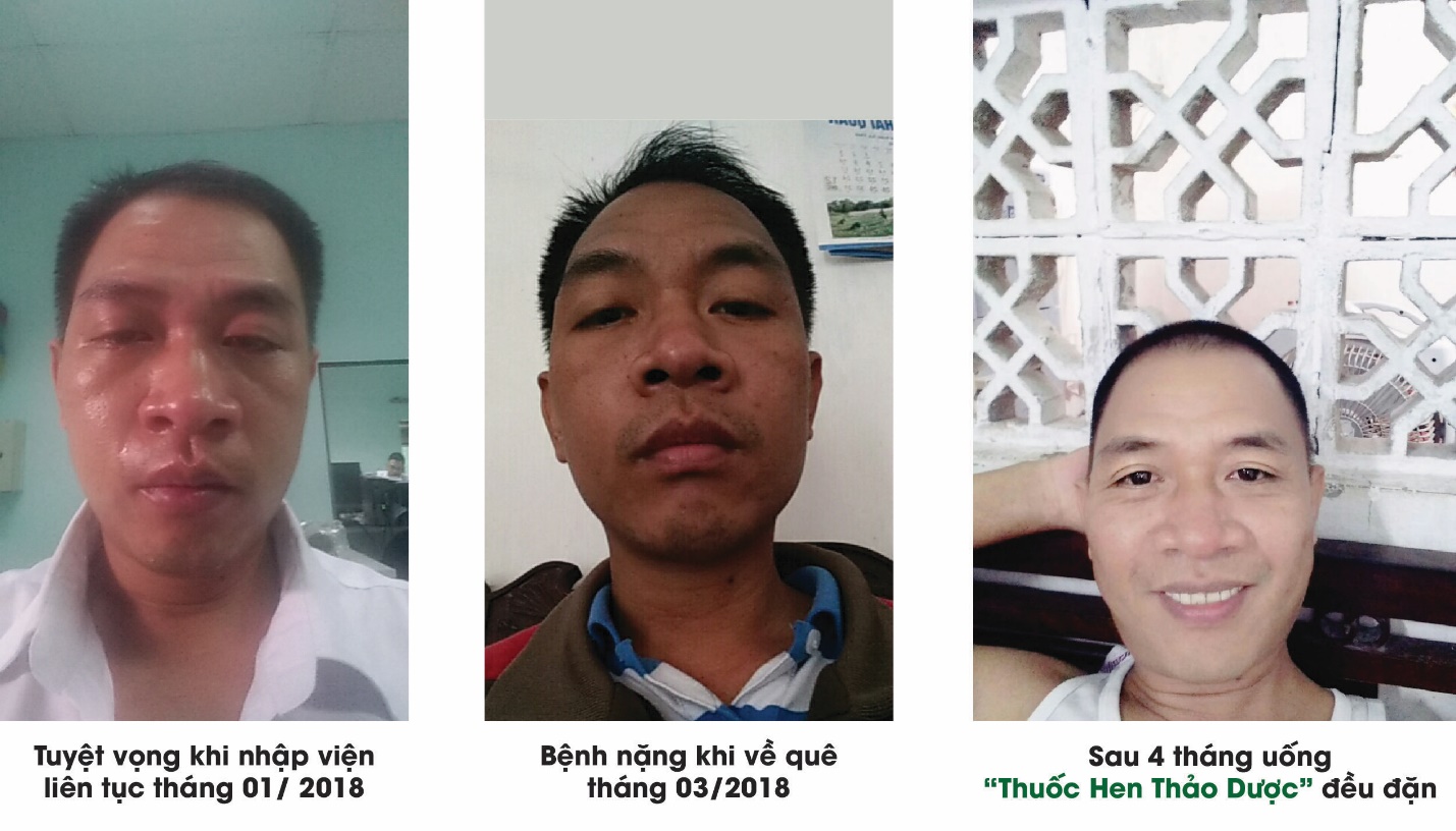 Sau ba tháng điều trị bằng thuốc hen thảo dược, tình trạng bệnh của anh đã ổn định, không còn xuất hiện cơn hen cấp, phế quản đã thông thoáng, nghe phổi đã không còn tiếng ran rít, anh ngủ ngon giấc và có thể làm các công việc đòi hỏi nhiều sức lực hơn trước, anh có thể ăn uống thoải mái, không còn lo lắng, ám ảnh vì căn bệnh của mình. Anh đang tiếp tục điều trị vào liệu trình thứ hai.