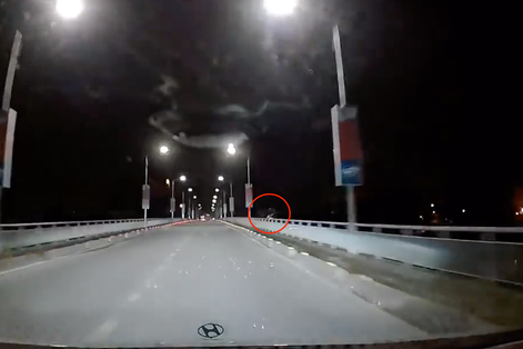 Camera hành trình bất ngờ ghi lại cảnh một nam thanh niên nhảy cầu trong đêm