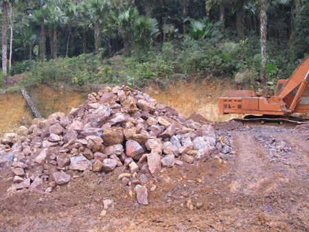 Một đống quặng sắt bị khai thác trái phép chưa được chuyển đi. |