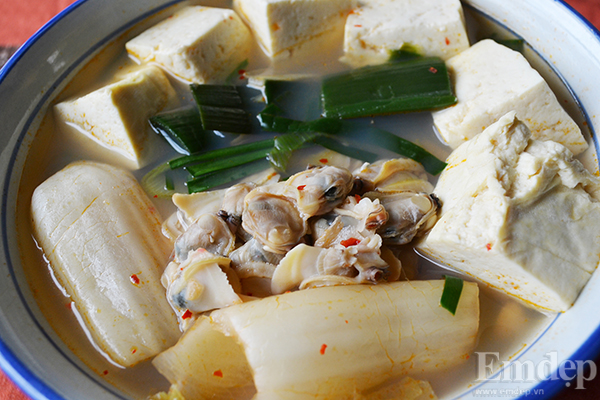 Canh ngao kim chi chua cay, nóng hổi vừa thổi vừa ăn rất phù hợp cho mùa rét này đấy!