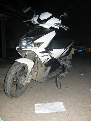 Chiếc xe máy gây tai nạn làm ông Giảng chết. |