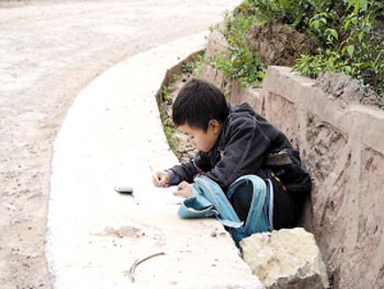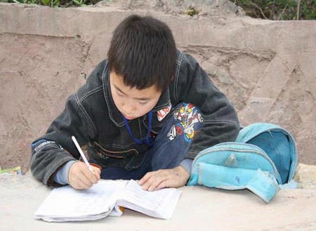 Giadinh.net - Ngày 26/3, nhiều độc giả của các báo điện tử và thành viên trên các diễn đàn ở Trung Quốc tỏ ra rất quan tâm và xúc động khi xem những tấm ảnh chụp một cậu bé ngồi bên vệ đường chăm chú học bài, kê vở bài tập lên đá, bên cạnh là chiếc cặp màu xanh.