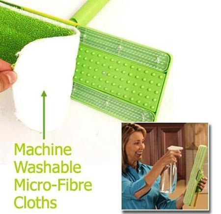 Đầu cây lau nhà này được làm từ các sợi siêu nhỏ, có thể giặt sạch và sử dụng trong 300 lần và giữ ẩm tốt hơn những sản phẩm khác cùng loại. Ngoài ra, cây lau nhà này còn gắn 1 bóng đèn phát sáng trong bóng tối.