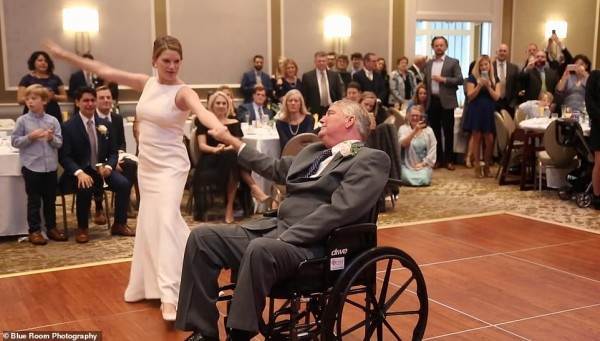 Cha già ngồi xe lăn nhảy cùng con gái trong lễ cưới gây xúc động mạnh