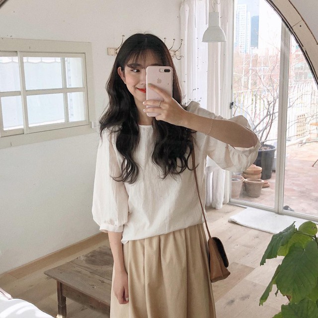 Chưa cần ăn vận cầu kỳ, chỉ cần diện một chiếc áo dài tay kết hợp cùng chân váy dài là bạn đã có được set đồ kín đáo, nữ tính đúng chuẩn cô nàng công sở. Bên cạnh đó, nếu như áo sơ mi đóng nhiệm vụ giúp che dấu phần bắp tay to thì chân váy dài lại khéo léo che đi phần chân cong. Khi bạn sơ vin thì combo này còn hữu hiệu gấp bội bởi nó sẽ giúp tạo điểm nhấn vào vòng eo khiến cơ thể trông cao ráo, thanh mảnh hơn.