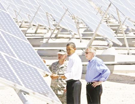 Trong khi đó Tổng thống Mỹ Barack Obama mới chỉ đặt mục tiêu sẽ tạo ra 10% điện năng từ nguồn năng lượng thay thế vào năm 2012 và 25% vào năm 2025. Quan trọng là ông chưa có một kế hoạch cụ thể nào để đạt các mục tiêu đó, vốn đã gặp nhiều sự công kích từ Quốc hội. Đó là lý do để tờ Washington Post số ra ngày 4/8 đánh giá Mỹ đang tụt hậu trong cuộc đua công nghệ xanh. Tờ báo viết : “Nước Mỹ đang đối mặt với 3 cuộc khủng hoảng một lúc, gồm khủng hoảng kinh tế, khí hậu và an ninh năng lượng. Giờ nước Mỹ có thể còn đối diện cả với một cuộc khủng hoảng cạnh tranh, đặc biệt trên lĩnh vực công nghệ xanh”.