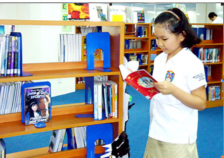 Thanh Ngọc đang đọc sách tại thư viện. Ảnh N.Viên |