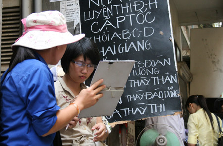 Các sĩ tử bắt đầu đổ xô học thêm tại các Trung tâm luyện thi. Ảnh: Chí Cường |