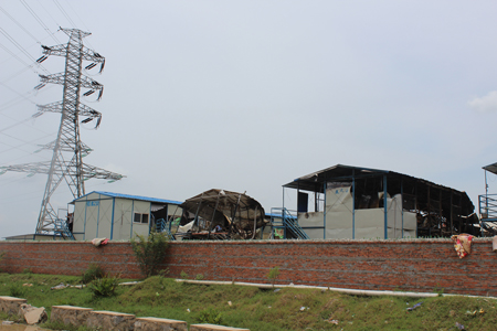Dãy nhà bị cháy được xây dựng dưới cột điện cao thế. Ảnh: M.Lý |