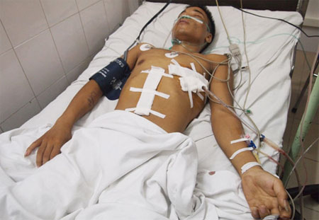 Anh Đặng Viết Lượng bị chém trọng thương đang nằm điều trị tại bệnh viện. Ảnh: Người Lao Động |