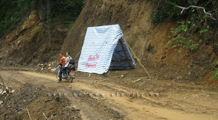 Không biết căn nhà này được chủ nhà hét giá bao nhiêu? Ảnh chụp tại đoạn Trạm Tấu - Bắc Yên (Lào Cai). |