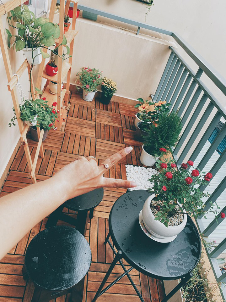 Theo người phụ nữ này, để décor lại một ban công cũ trống trơn thành 1 ban công đẹp như hiện nay, người vợ trẻ chỉ chi hết khoảng 3-3,5 triệu đồng: "Trong đó, vỉ gỗ trải sàn mình mua tầm 1 triệu đồng. Mình order gỗ tự đóng tầm 380 ngàn đồng; cây cảnh chậu khá là đắt tiền, mỗi cây tầm 50 ngàn đến 200 ngàn đồng. Ngoài ra là một số chi phí lặt vặt mà mình hiện không nhớ rõ hết", chị Dung nói.