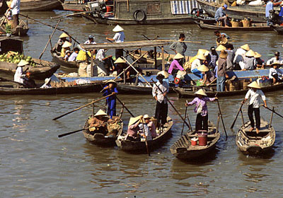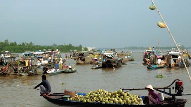 Nhộn nhịp chợ nổi trên sông. |