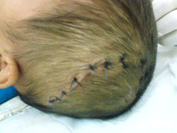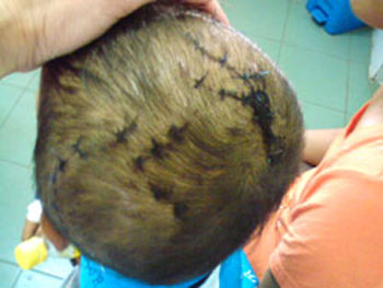 Bé C. và những vết khâu nhìn từ đỉnh đầu |