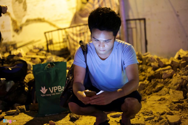 Anh Nguyễn Thành Trung (sinh viên Đại học Công nghệ) quyết định ngủ lại bến xe để hôm sau đón được chuyến sớm nhất về Nghệ An.
