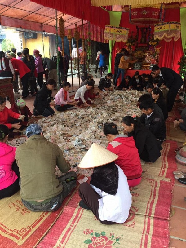 Hình ảnh hàng triệu tờ tiền lẻ lấy từ hòm công đức rải đầy thềm nhà, được người dân đếm và phân loại nhận được sự quan tâm của cộng đồng mạng.