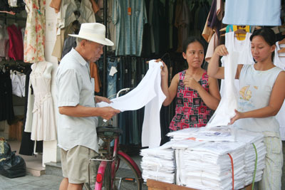 Trên thị trường, quần áo mùa hè vẫn bán chạy. |