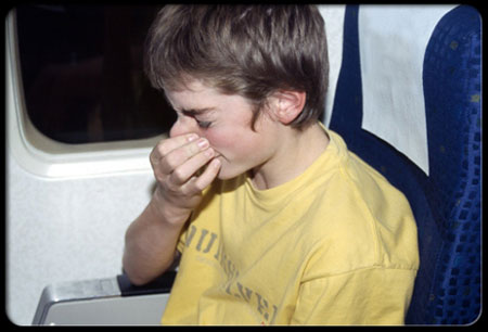 - Nếu không có bong bóng, bạn cho bé thổi túi giấy hay túi nôn bằng giấy trên máy bay.