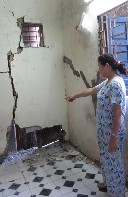 Ngoài bà Liễu, hộ nhà bà Lê Thị Thanh Bình (61 đường Nguyễn Hữu Thọ) cũng bị ảnh hưởng nghiêm trọng, nhiều vết nứt đã xuất hiện ở tường, sàn, gây nguy hiểm cho những người sinh sống trong căn nhà.