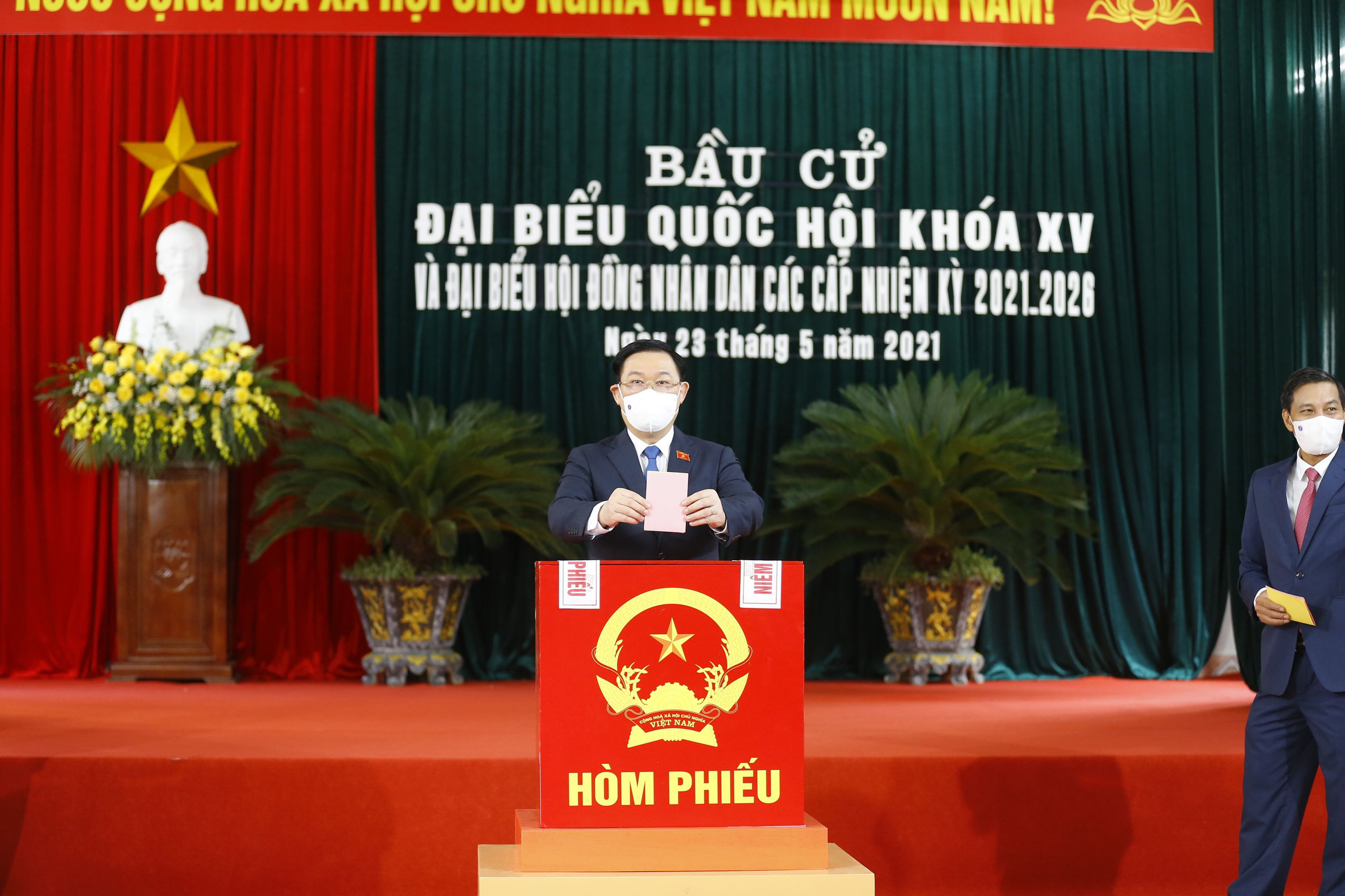 Trong không khí thiêng liêng, xúc động của ngày hội toàn dân, Chủ tịch Quốc hội Vương Đình Huệ nói: "Thay mặt Quốc hội, Hội đồng bầu cử quốc gia, tôi xin được gửi tới đồng bào, các chiến sĩ đang ngày đêm canh giữ biên cương, các bác sĩ, quân đội, công an, dân quân tự vệ… cầm lá phiếu vừa thực hiện nhiệm vụ chống dịch lời cảm ơn sâu sắc nhất".