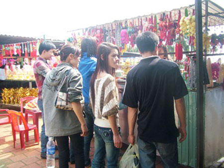 Trước lúc ra về ai ai cũng tìm mua những lá bùa và những kỷ vật
