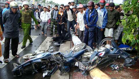 Khoảng 10h30' sáng ngày 22/11, một vụ tai nạn giao thông nghiêm trọng đã xảy ra tại ngã tư Điện Biên Phủ - Hà Huy Tập trên tuyến đường ra vào cửa ngõ phía Bắc TP Đà Nẵng. 6 chiếc xe máy và 1 xe xích lô đang đứng trên đường Điện Biên Phủ chờ đèn xanh, đèn đỏ thì bất ngờ bị một chiếc xe cẩu từ đằng sau “lùa” tới khiến ít nhất 4 người bị thương nặng.