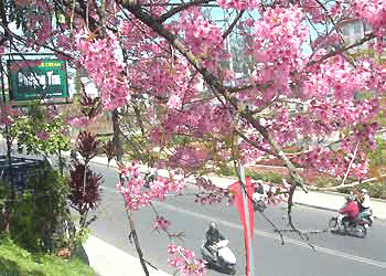 Mùa hoa mai anh đào của Đà Lạt năm nay đến muộn gần 2 tháng và nở rộ đúng vào những ngày sau Tết. Hoa đỏ hồng đẹp rực rỡ giữa bầu trời trong xanh, nắng vàng đem lại vẻ thơ mộng lạ lẫm cho thành phố cao nguyên này