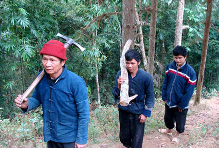 Hàng ngày, ông bố 70 tuổi dẫn 4 đứa con mù vào rừng đốn củi. |