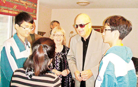 Chủ tịch hội người mù vùng Halmstad ông Stellan thăm hỏi các em khiếm thị đến từ Hà Nội. |