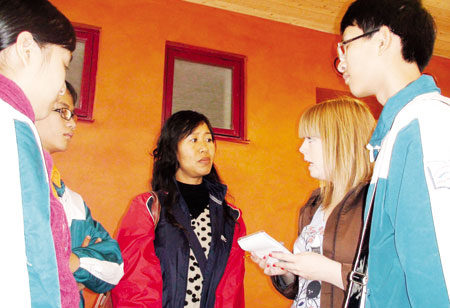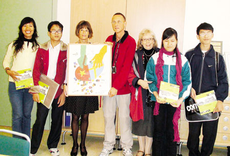 Giao lưu với thầy trò trường St.Petri ở Malmo, trong ảnh - chụp ảnh lưu niệm với cô hiệu trưởng và thầy Bertill Kaa giáo viên dậy mỹ thuật. |