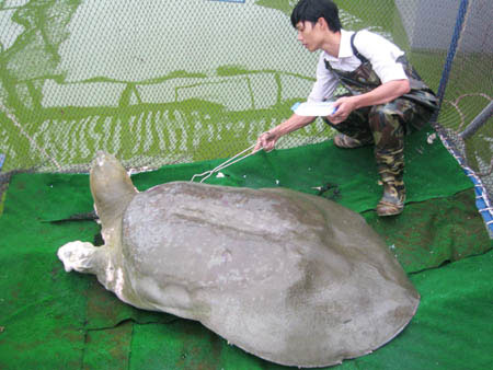 ![]() Cụ Rùa là một "bệnh nhân" rất thân thiện, hiền lành. |