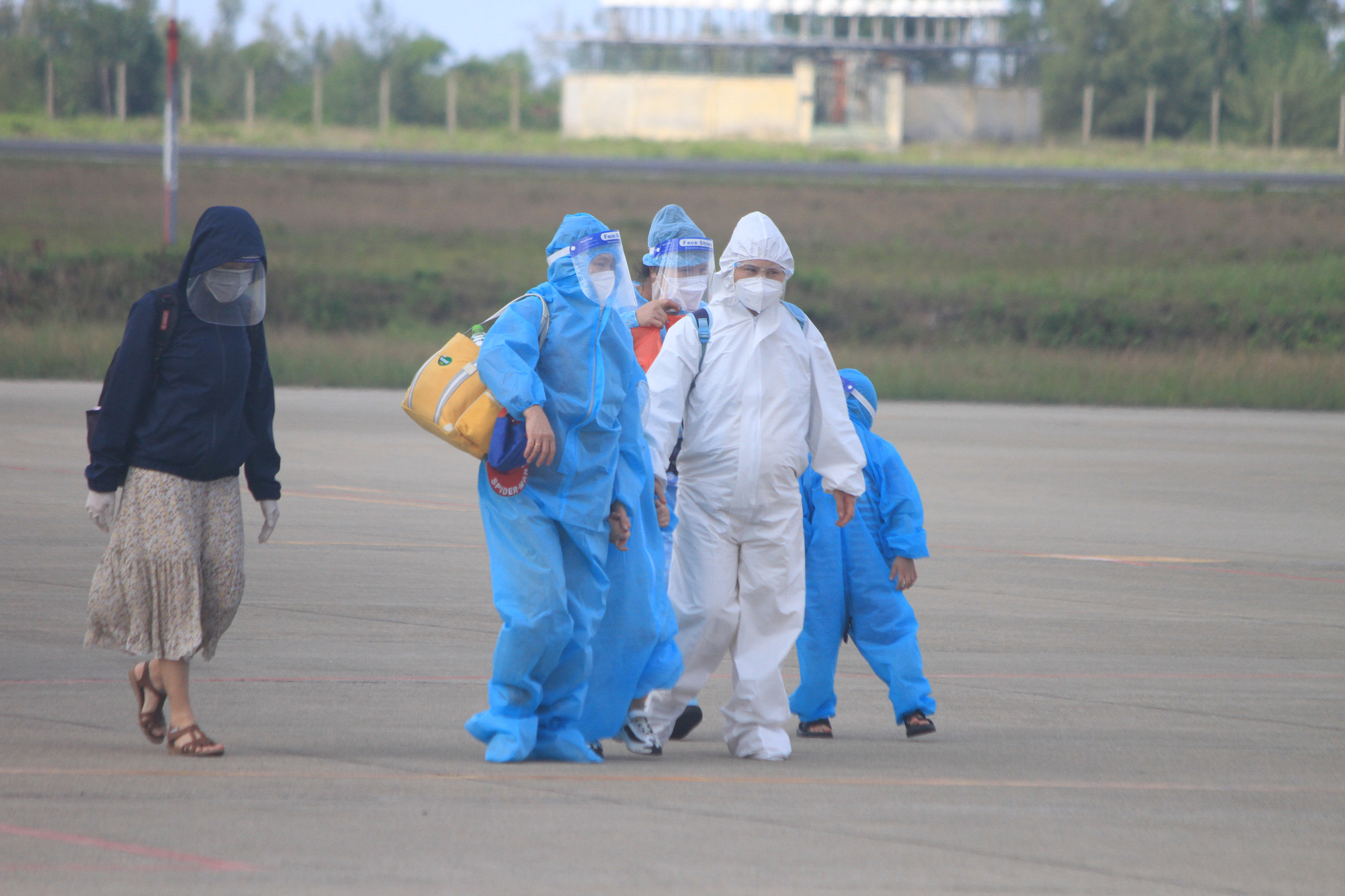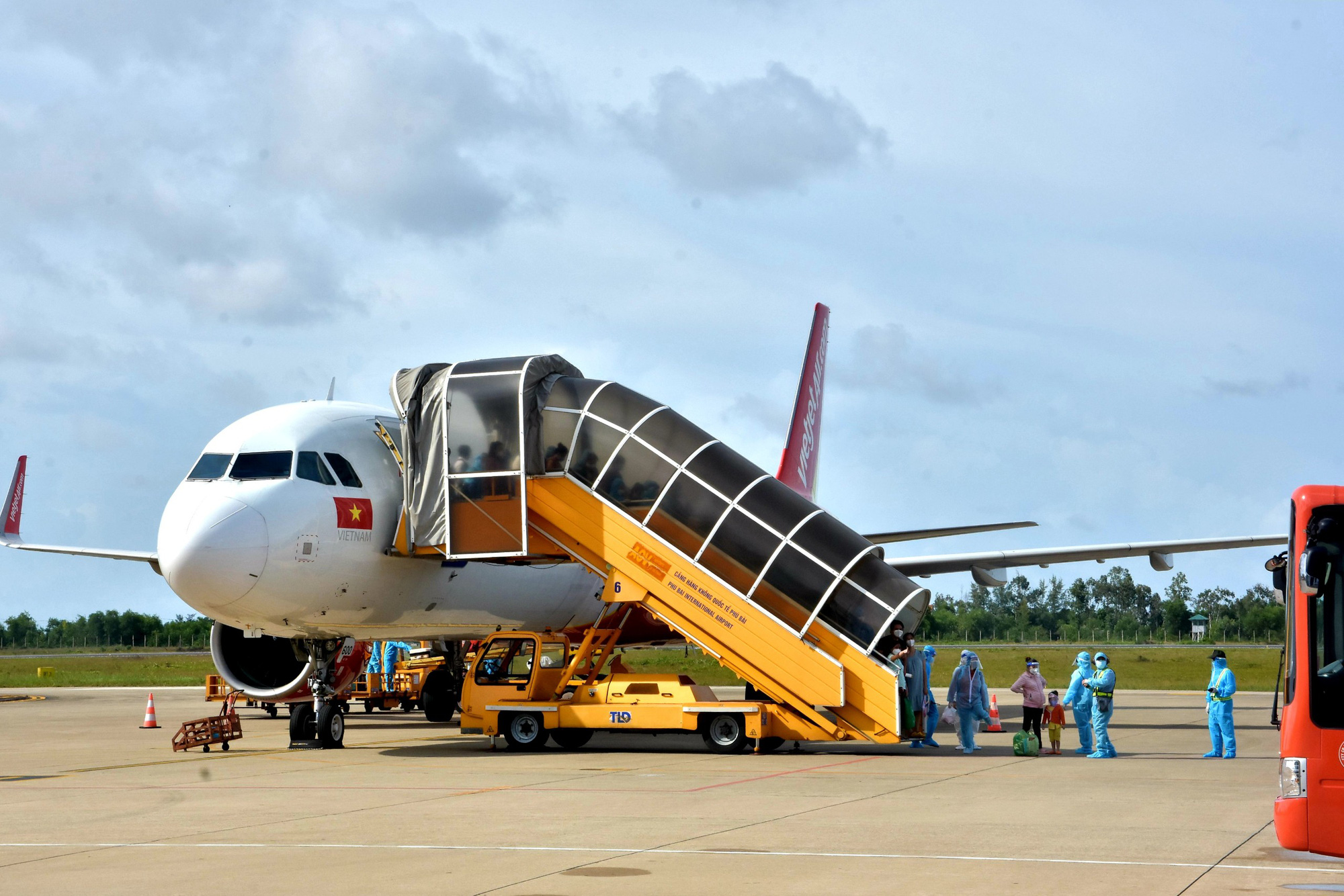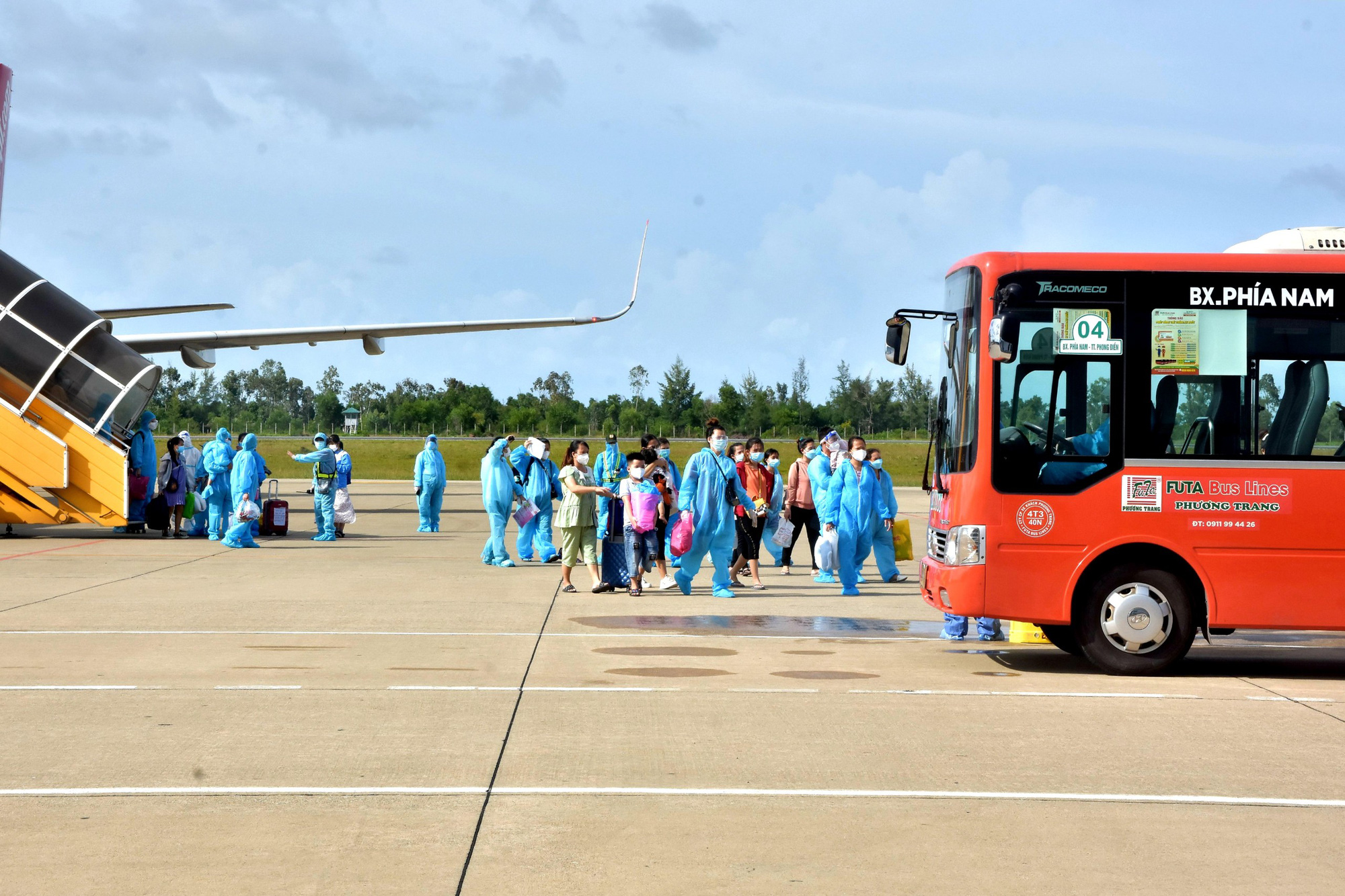 Chiều 5/10, tại Cảng hàng không Quốc tế Phú Bài, chuyến bay mang số hiệu VJ3494 của hãng hàng không Vietjet đã đưa 231 công dân Thừa Thiên Huế gồm thai phụ và người thân đi kèm trở về từ TP. HCM hạ cánh an toàn.