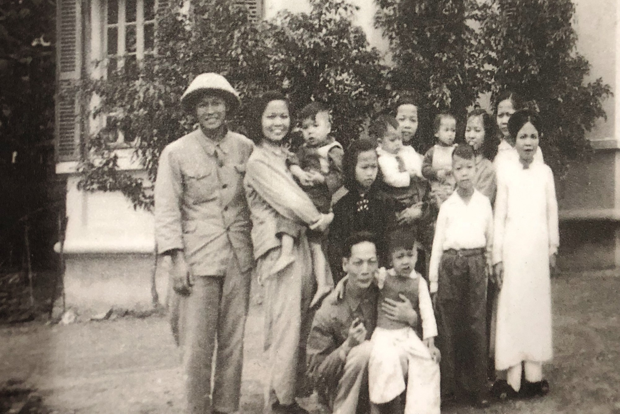 Bức ảnh tư liệu về gia đình nhà văn hóa Hoàng Đạo Thúy, bên các con và các cháu của người con gái cả đã mất vì tai nạn giao thông. Ảnh: Gia đình cung cấp