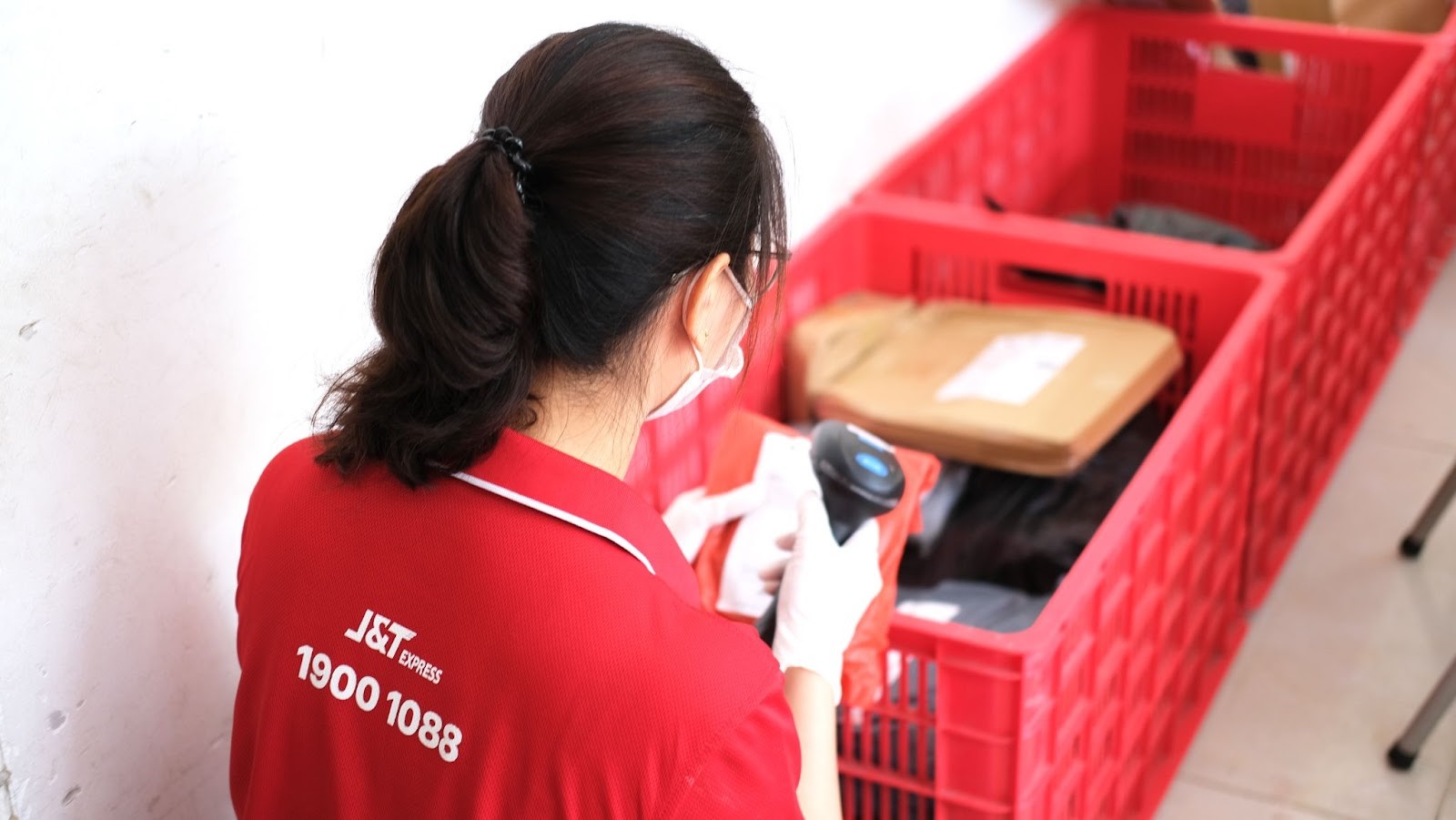 Shipper J&T Express đang kiểm tra hàng cho khách