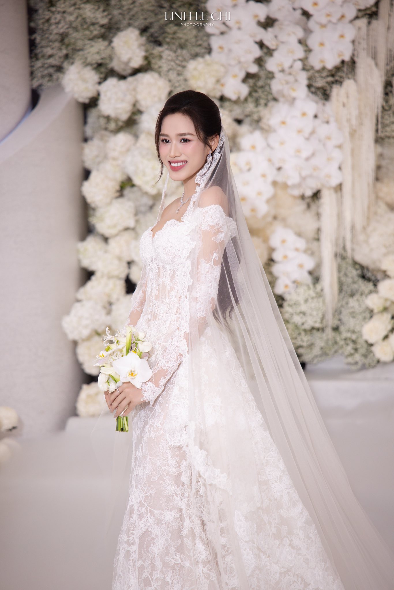 Nhan sắc xinh đẹp, rạng rỡ của Hoa hậu Đỗ Thị Hà trong hôn lễ.