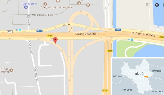 Nút giao vành đai 3 với cao tốc Pháp Vân - Cầu Giẽ (chấm đỏ) - nơi xảy ra tai nạn. Ảnh: Google Maps.