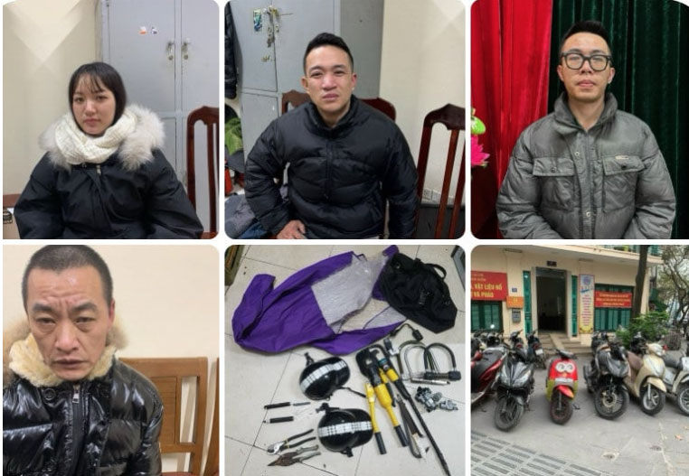 Bước đầu, Cơ quan Công an đã làm rõ, vào ngày 18/2, các đối tượng lấy trộm một xe Honda Wave Alpha. Đến ngày 25/2, nhóm này tiếp tục trộm cắp một xe SH Mode. Ngày 26/2, nhóm này gây ra một vụ trộm cắp chiếc xe máy Yamaha Exciter trên địa bàn quận Hoàn Kiếm.