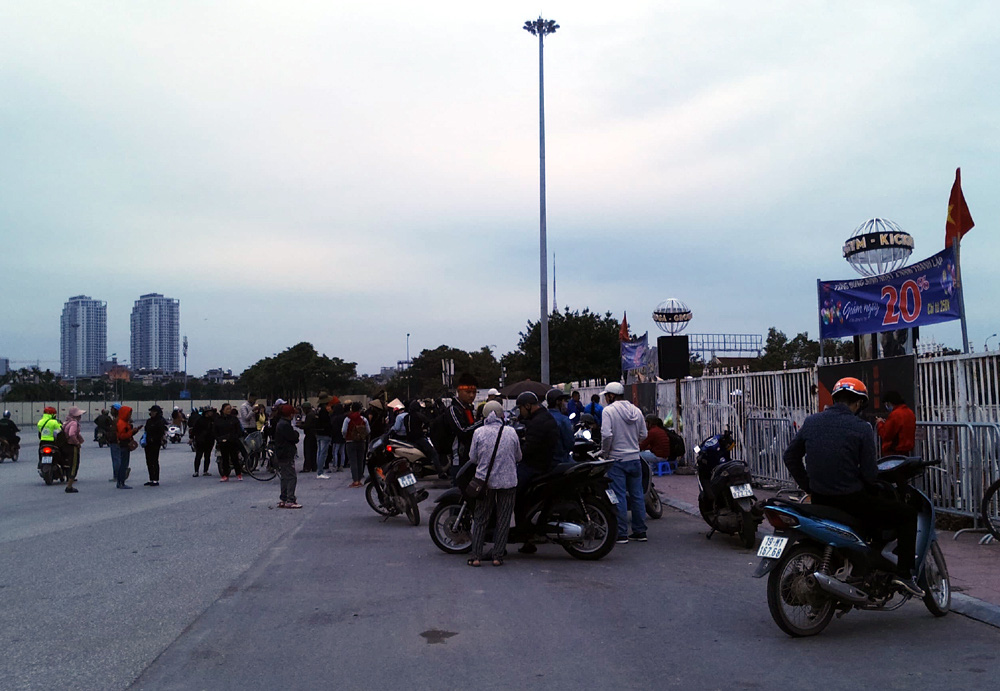 Theo ghi nhận, trước quảng trường SVĐ Mỹ Đình, hàng trăm "cò vé" đã và đang bủa vây người hâm mộ để thực hiện việc mua/bán vé. Thậm chí, bất cứ ai dừng đỗ xe trước quảng trường đều bị đội quân "cò" bủa vây để mời chào, đôi lúc chèo kéo với mục đích có thể mua hoặc bán được những cặp vé kiếm lời.
