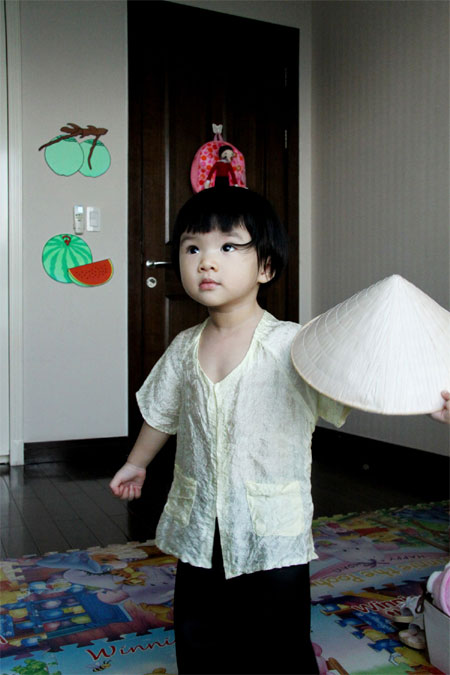 Con gái Trương Ngọc Ánh ngộ nghĩnh nón lá, áo bà ba