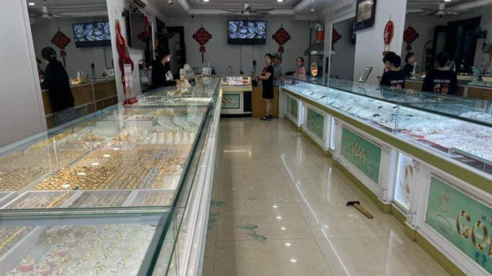Tại đây, khi chủ tiệm vàng mất cảnh giác, đối tượng đã lấy búa chuẩn bị trong balo từ trước đập vỡ tủ kính, nhanh tay lấy đi một lượng vàng rồi tháo chạy.