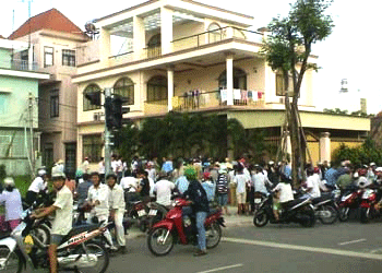 Người dân hiếu kỳ vây quanh căn nhà anh Dũng. |